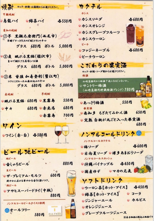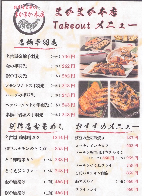 The menu at Maka maka Honten offers a relaxed yet thoughtfully curated selection of traditional Nagoya flavors and Japanese comfort dishes. Here, you can find a variety of casual bites and savory plates that pair well with a leisurely meal or a shared evening gathering.